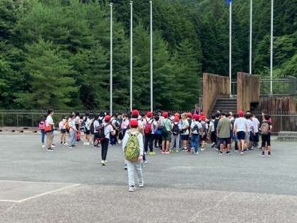各部屋から宿舎前の広場に集まり避難訓練を行いました。