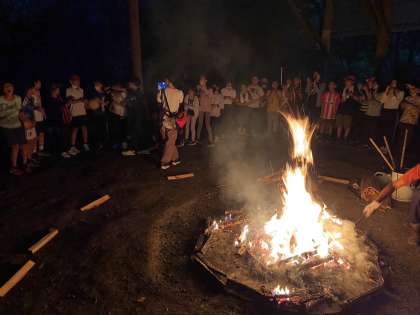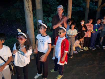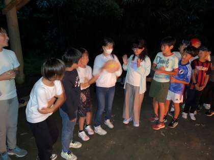 雨模様の中でしたが屋根のある屋外ファイヤー場で、予定通りキャンプファイヤーを行うことができました。司会の第一声からノリノリで、みんなで盛り上がる素敵なキャンプファイヤーとなりました。各クラスのスタンツも全員で楽しむことができました。みんなで作り上げた宝物の思い出が一つできました。