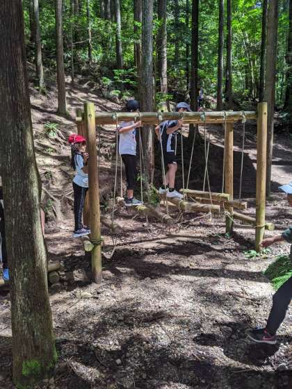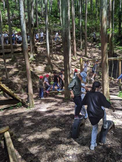 昼食後、アスレチック体験をしました。この林間学習最後の最終のプログラムです。