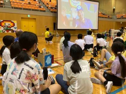 ラッフィーの作曲した歌で歓迎してもらい、ダンスやクイズなど数々のゲームに挑戦して、会場みんなでコイン(ゲームをクリアするたびにもらえるコイン)集めをしました!