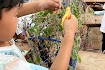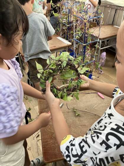 長く伸びた蔓にびっくりしながら、3本ほどほどいて、まあるく巻いて、編んでいきました。