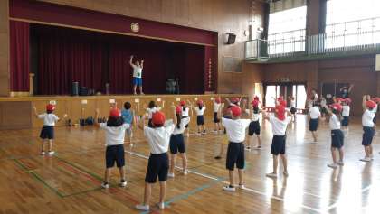 最初のうちは踊りの振付けを覚えるなど、講堂での練習が多いようです。