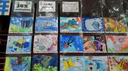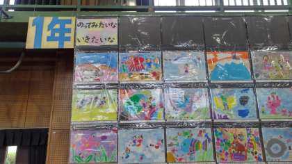1・3・5年は平面作品、2・4年は立体作品、6年は両方展示しています。