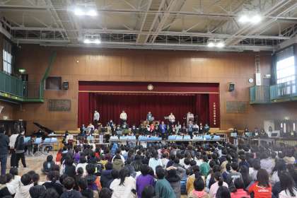 6年生に向けて在校生が歌った「365日の紙飛行機」