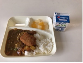 ごはん、牛乳、カツカレーライス、フルーツゼリーでした。