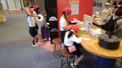 東西線で大阪天満宮まで行き、天神橋筋商店街を通って扇町にあるキッズプラザ大阪に着きました。電車の中は静かに、商店街はいろいろなお店を見ながら、かしこく行動できました。