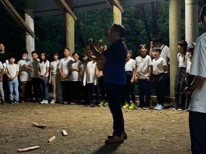 楽しそうなキャンプファイヤーの写真が届いています。これは「火の神」?そして楽器を奏でているのは、もしかして・・・?