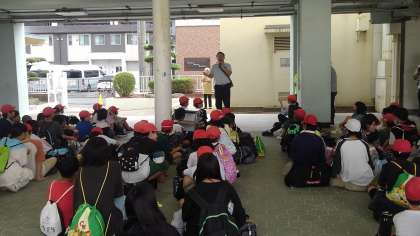 7時集合と朝早いですが、時間通りに揃って出発式を行いました。