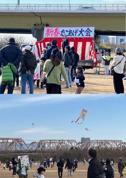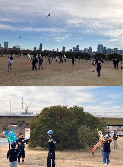 1月19日(日)淀川右岸西中島地区河川敷にて、第51回新春たこあげ大会が開催されました。加島小学校からは子ども会のキックベースチームのメンバーが参加しました。