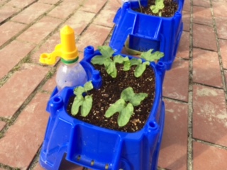 さて、1年生は、今アサガオを育てています。種から育てたアサガオですが、少し前までは、土から芽をのぞかせていたと思いきや、双葉となってさらに大きく育っていました。1年生の児童は、登校すると毎日水やりをしています。その成果が出ています。この様子では、すぐにツルが伸びてきそうです。