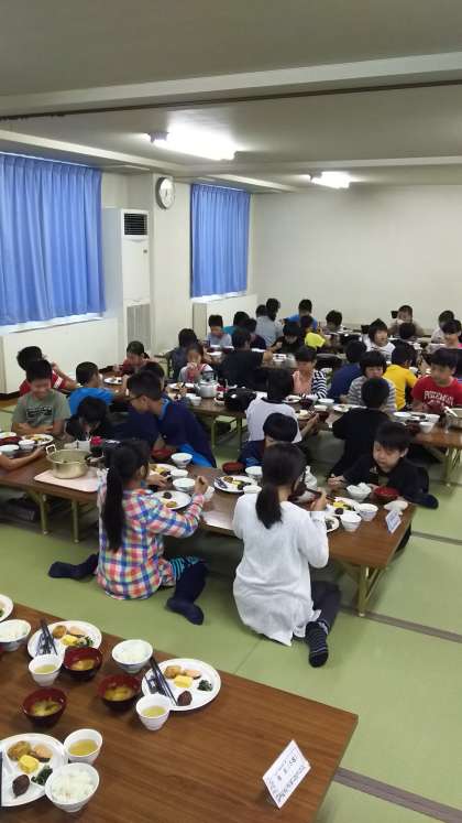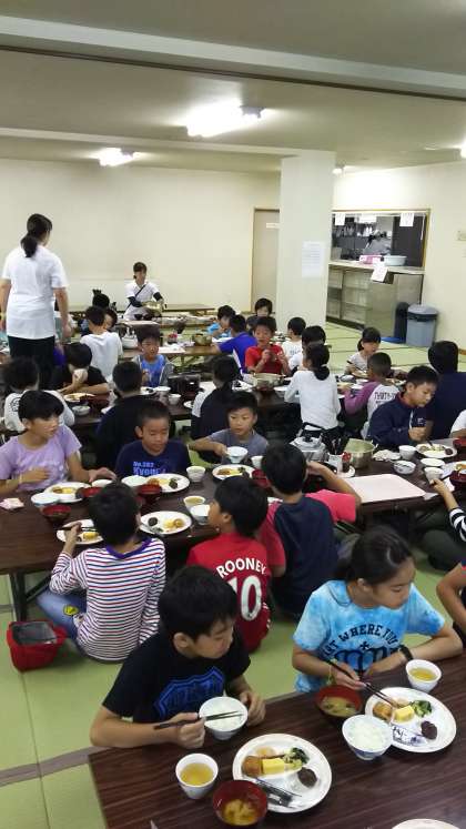 朝の集いを終えた子どもたちは、山登りに備えてしっかり朝ご飯を食べました。