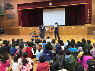 信号機のある交差点の渡り方や自転車の乗り方等について、具体的にお話ししていただきました。子どもたちは、質問に対して積極的に手を挙げて答えたり、活動したりしていました。