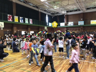 2年生から6年生の児童は、お祝いの言葉を学年ごとに全員で呼びかけたり、校歌を斉唱したり、クイズやゲームをしたりして、「1年生を迎える会」を終えました。