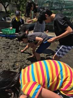 昨日の日曜日、給食委員会の児童で西校舎裏にある「特設田んぼ」で田植えをしました。泥の中に足を突っ込むのは気持ち悪いのか、気持ちいいのか……。貴重な体験でした。秋の収穫に向けてこれからもお世話が必要です。豊作になるといいですね。