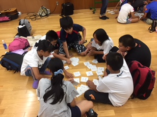 夜のつどいが始まりました。いろいろなレクレーションが用意されていて、班の友だちと協力しながらゲームを楽しんでいます。じゃんけんダッシュのゲームは大盛り上がりです!