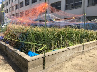給食委員会では、春先から種もみの芽だし、田植えと稲を育ててきました。現在では大きく育ち、稲刈りができるまでになりました。10月6日(土)には給食委員会で稲刈りをおこなう予定にしています。