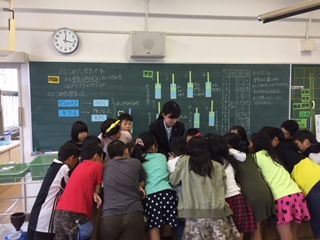 9月18日から加島小学校へ教育実習生として来ている泉森先生が、本日3,4時間目に研究授業をしました。約1カ月間学んできたことを活かして4年2組の子どもたちのために一生懸命授業をしていました。授業は、理科の「とじこめた空気や水」の単元で、今日は「水も空気と同じように、おしちぢめることができるのだろうか?」という疑問を実験を通して解決するという学習内容です。子どもたちは先生の話をよく聞き、目的をもって実験に取り組んでいました。
