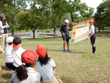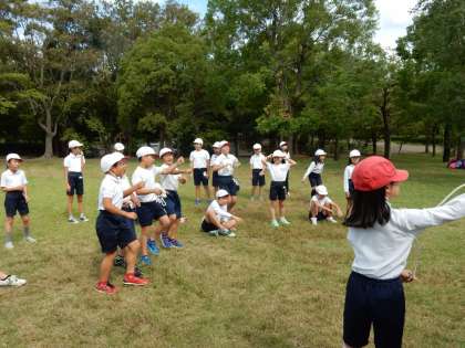 例年、公園内でオリエンテーリングを行っていますが、台風の影響により一部閉鎖などがあったため、今回はミニ運動会を行いました。