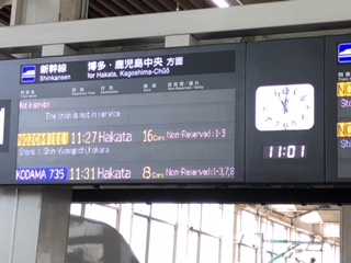 午前11:00 新大阪駅を出発した新幹線が広島駅に到着しました。