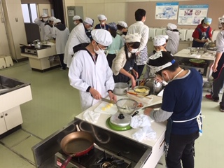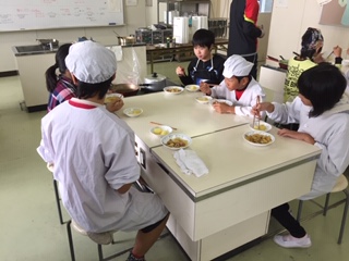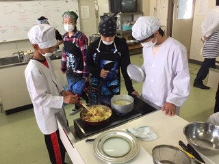 本日の1・2時間目に6年3組の児童が調理実習をしました。1、2組同様にジャーマンポテトとこふきいもをつくりました。班の友達と協力して、手際よく準備、下ごしらえ、調理ができていました。作り上げた料理をみんなでおいしくいただきました。