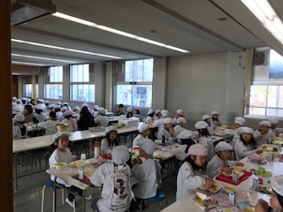 今月のランチルームは、2年生と6年生が使います。今年も好き嫌いなく何でも食べて健康に過ごしましょう!