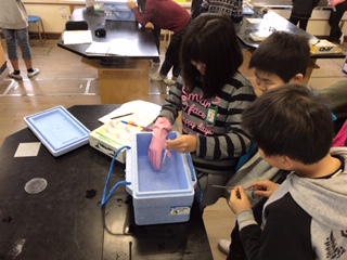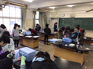 グループで協力して、とかすお湯の温度をはかったり、食塩がとけきるかどうかていねいにかきまぜたりしました。
