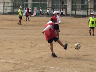 チームで声をかけ合って楽しくサッカーをしました。