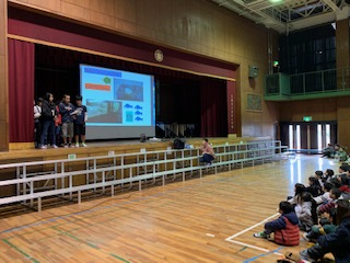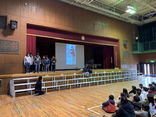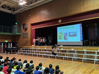 健康委員会は、手洗いやけが・睡眠のことについて、クイズ形式で詳しく発表してくれました。聞いている児童は楽しみながら、健康について学ぶことができました。