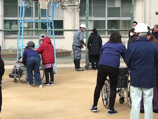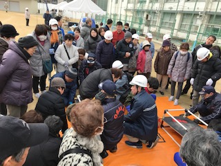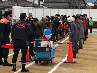 バケツリレーやジャッキアップする救出訓練、車いす体験なども行われました。