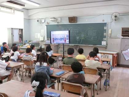 校長先生からは夏休み中に教職員みんなで考えた子ども像、「自分で考える力をもった子」になってほしいというお話がありました。そのために今の自分に必要な目標を考えました。またどんな目標を考えたかおうちでも聞いてあげてください。