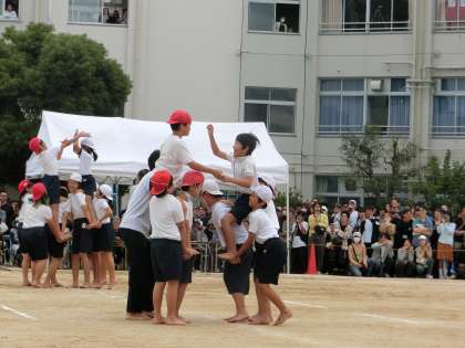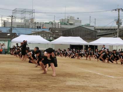 6年生はソーラン節と組体操で、多くの人に感動を与える圧巻の演技でした。