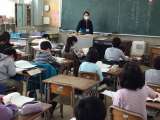 1年生にタイムスリップした6年生。 小さい、小さいイスに座り、「おおきなかぶ...