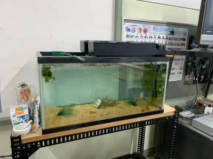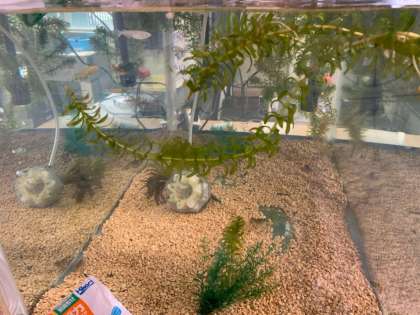 6年生が5年生の時に理科の学習をしたり、お世話をしたりしてきたメダカ達が理科室の大きな水槽にやってきました。
