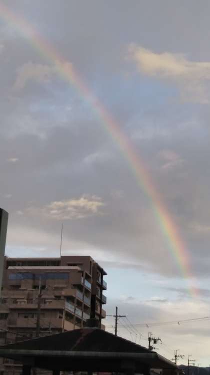 昨日、最寄りの駅を降りて駐輪場に向かっていると、夕空に虹がかかっていました。