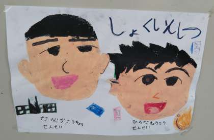 先日、1・2年生で学校探検を行いました。それに向けて、2年生が各部屋の説明のポスターを作って、扉に貼ってくれました。それがとてもうれしくて、これからもずっと張り続けたいと思います。