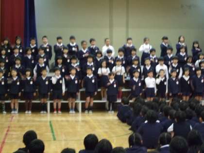 2年生は、詩「カマキリ」と「なまけ忍者」、6年生は、詩「生きる」と「短歌・俳句」の音読をしました。朝の「音読タイム」で少しずつ練習を重ね、全員が大きな声で心を込めて発表することができました。