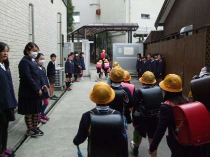 「つ」づけよう を合言葉に、児童会の代表委員会の子ども達が、毎朝、門のところで声かけを頑張っています。