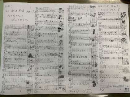楽しく覚えられるように、都道府県クイズを一人一人が考え、課題を作成しました。