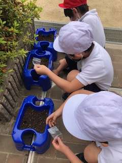 子どもたちが楽しみにしていたあさがおの種まきをしました。