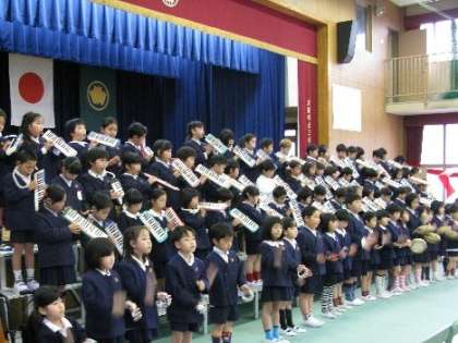 2年生になりました。去年は新入生として歓迎の演技を見ていましたが、今年はみんなで舞台に。美しい歌声、元気いっぱいの演奏。明日の入学式でも笑顔で出演してほしいですね。