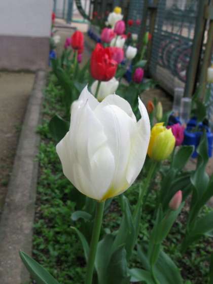 1年生の教室の前のチューリップも入学をお祝いしています。