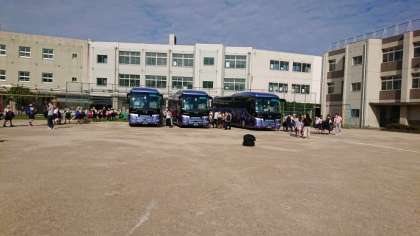 今日から林間学習が始まります。出発式を終え、5年生はハチ高原へと向かいました。