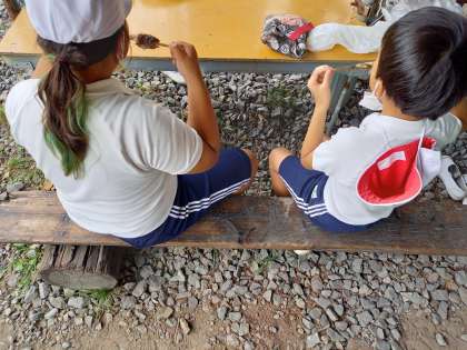 みんなで協力してつかまえた魚をおいしくいただきました。