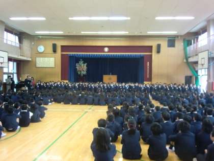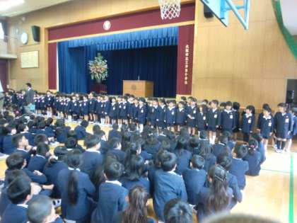 1年生のみんなと2年生から6年生のみんながご挨拶。