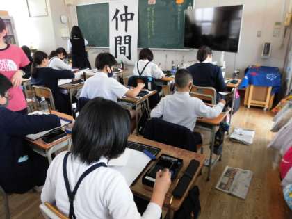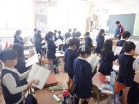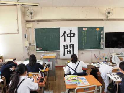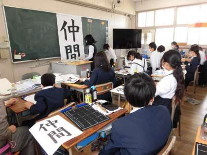 今日は、「仲間」という字を書いています。6年生にぴったりの字ですね。