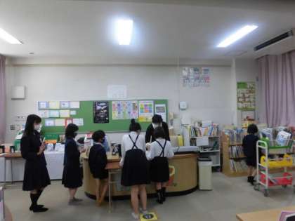 1組が図書の時間に図書室にきています。今年度より本を2冊借りることができます。たくさん本を読もうね!
