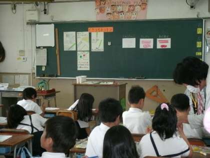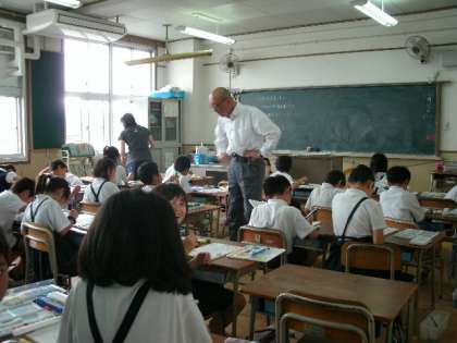 くぎ打ちは前の時間で終了。絵の具を使って配色を考えて丁寧に色をつけました。