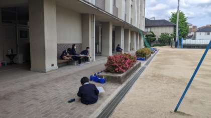 自分で決めたいろいろな場所から、写生をしています。完成が楽しみです!