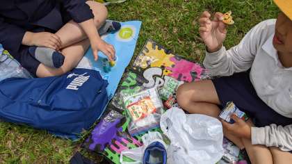 みんなで一緒に食べるお菓子はおいしいなあ!
