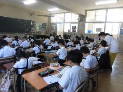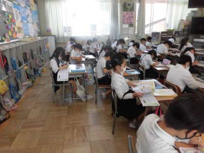 1組は国語です。「教」「分」の漢字の練習をしました。そのあとは、たんぽぽはかせのカードをつくりました。